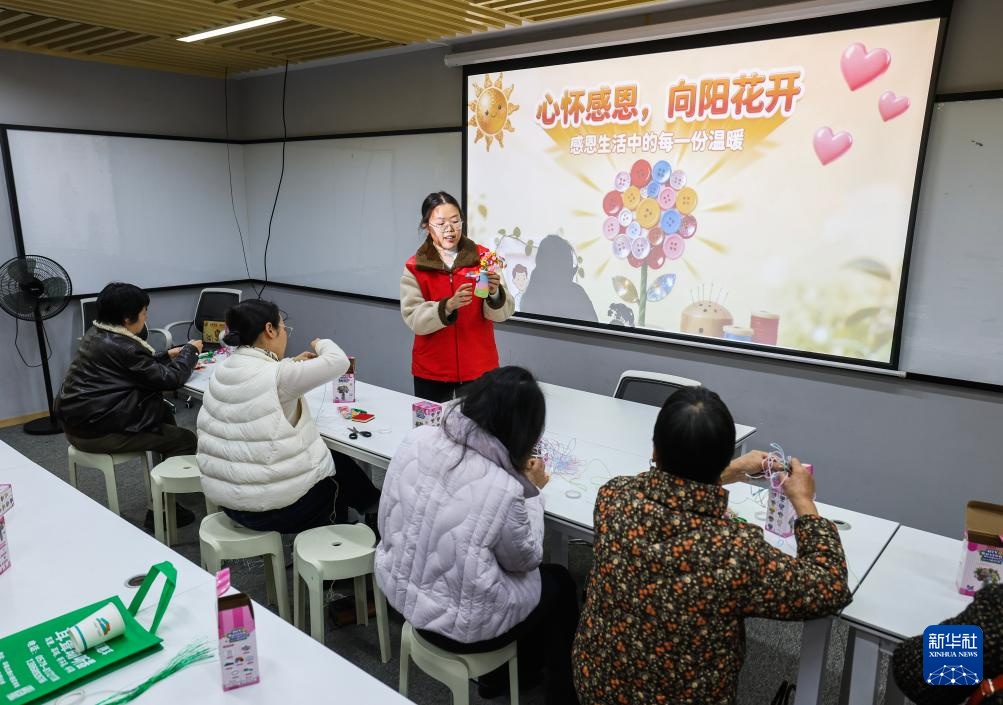 11月27日,在小春市富东社区党群服务中心,志愿者教居民制作手工艺品饰品。近年来,浙江省金华市金东区倡导以党领导地方治理,持续打造坚强的社工队伍,聚焦“老少”等重点群体,着力解决当地居民的急难忧忧问题,以当地社区的“服务温度”提升居民的“幸福指数”。新华社记者 许友凯 摄 11月27日,志愿者在小春市福东社区党群服务中心为幼儿提供托儿服务。近年来,浙江省金华市金东区倡导以党领导地方治理,持续打造坚强的社会工作者队伍,重点关注社会工作者等重点群体。为“老少皆宜”,着力解决当地居民的急、难、急问题,以当地社区的“服务温度”提升居民的“幸福指数”。新华社记者 许友凯 摄 11月27日,小春市福东社区党群服务中心,志愿者为社区老人测量血压。近年来,浙江省金华市金东区倡导以党领导地方治理,持续打造强大的社会工作者队伍,聚焦“老少皆宜”等重点群体,着力解决当地居民的急、难、急问题,以当地社区的“服务温度”提升居民的“幸福指数”。新华社记者 徐宇 供图