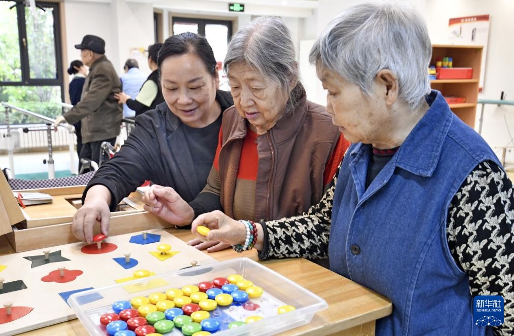 10月17日,北京朝阳区福寿园养老公寓来官营地区养老服务中心,老人们在玩智力游戏。